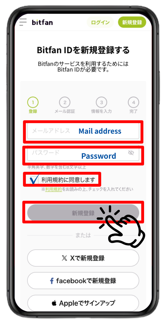 ※すでにBitfan IDをお持ちの場合はログインをして⑤へ
