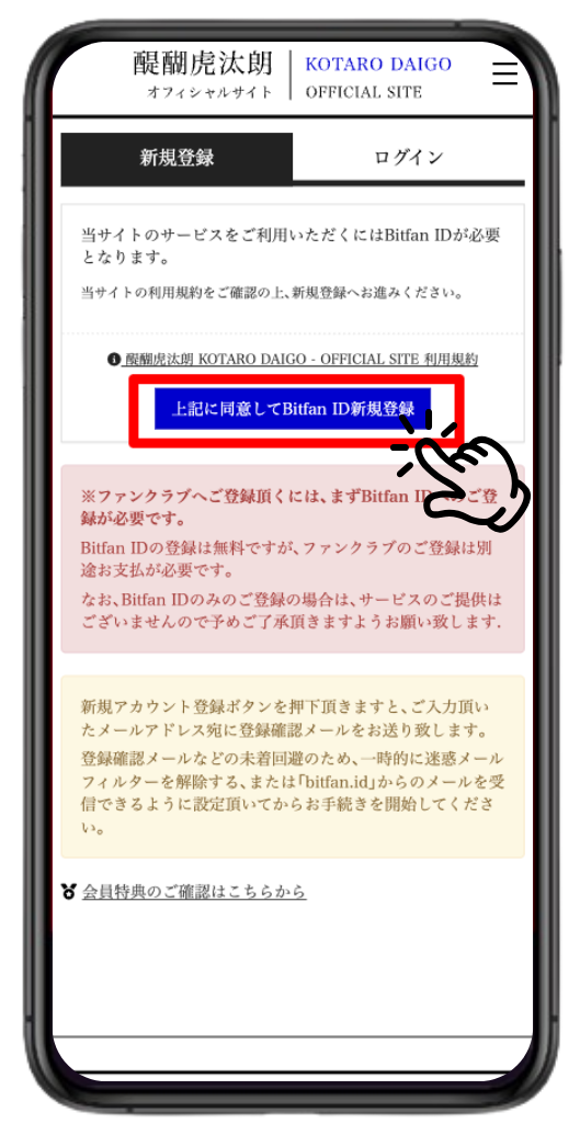 ②「Bitfan ID新規登録」をタップ