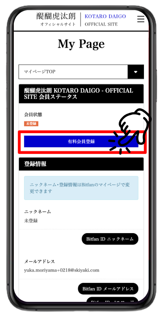 ⑤サイトの「MyPage」に表示される「有料会員登録」をタップ