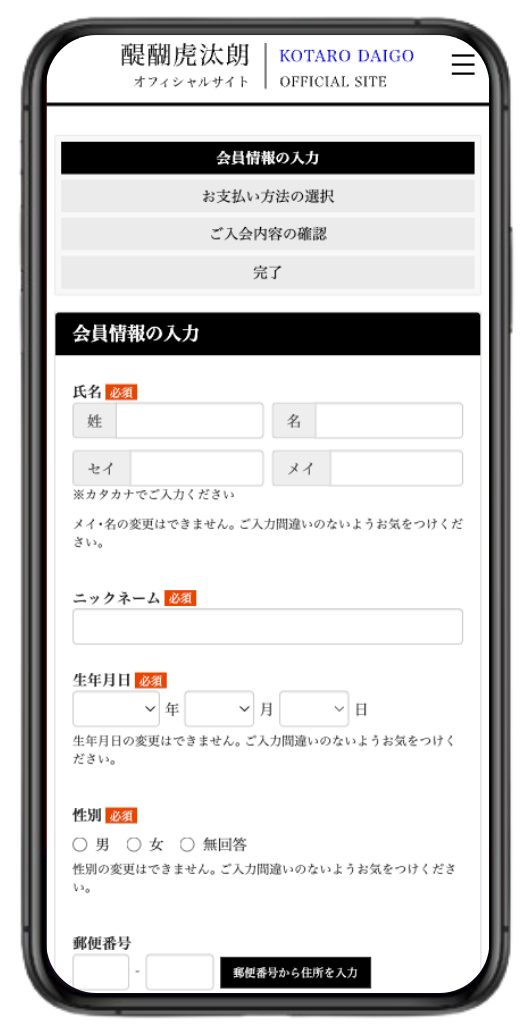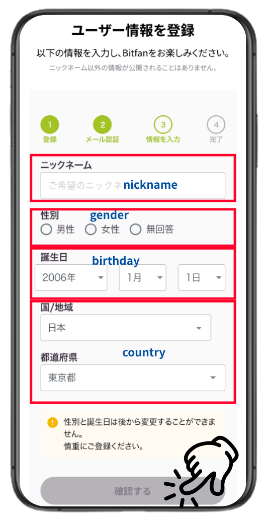 ※性別・生年月日は登録後の変更ができません