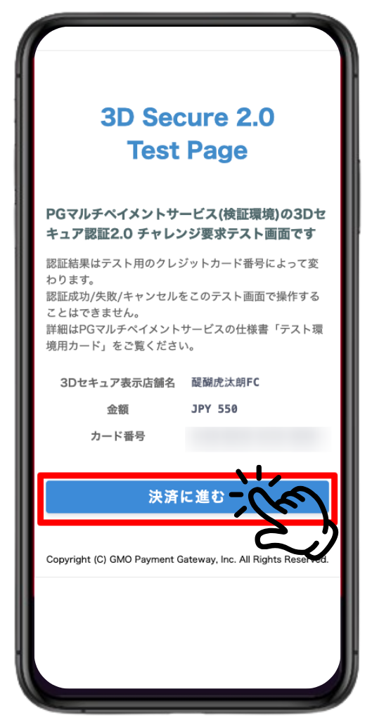 クレジットカード決済の場合、3D Secure 2.0の認証が発生する場合がございます。