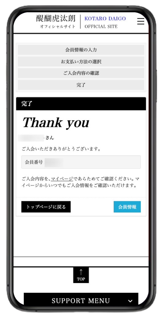 ⑨入会完了!FCコンテンツをお楽しみください!